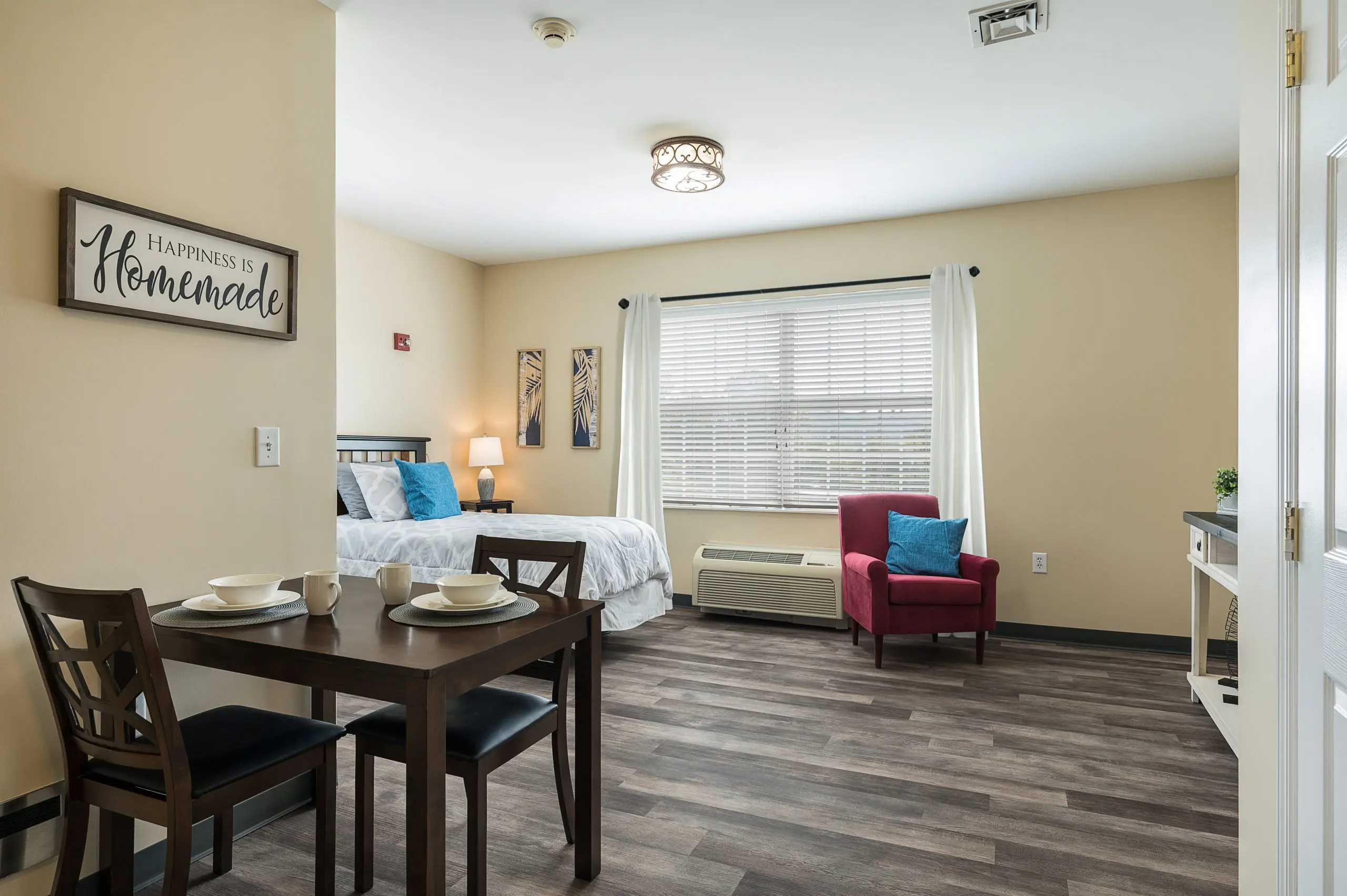 - Studio, one- and two-bedroom apartments